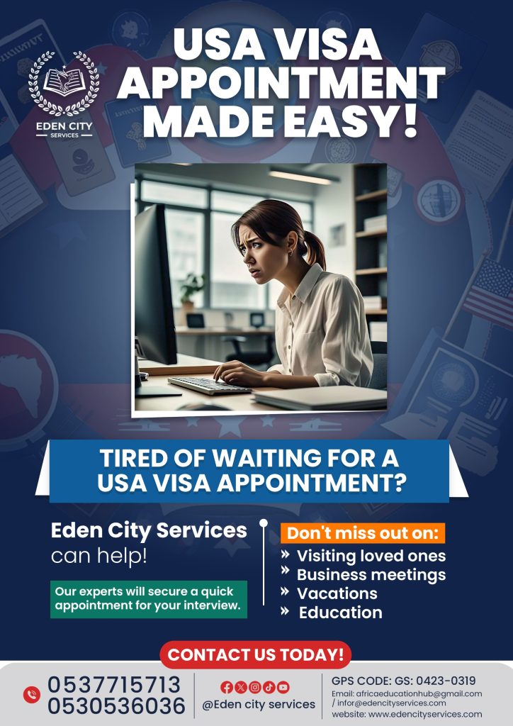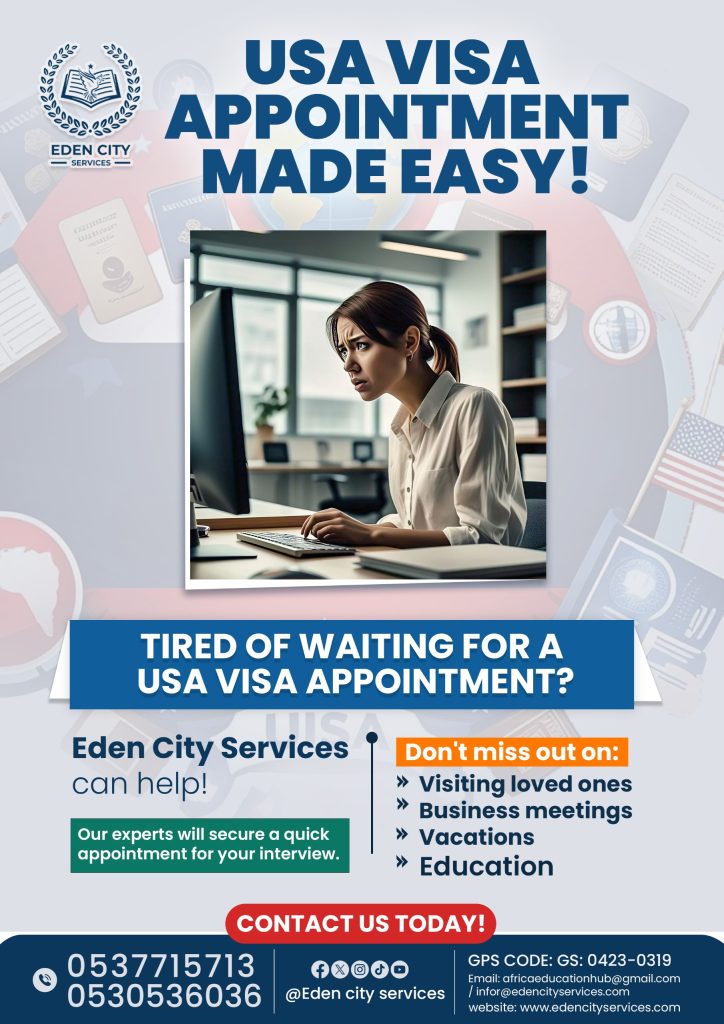 Are you struggling to obtain an appointment at the US embassy, hindering your plans to pursue higher education, reunite with loved ones, or explore the country? Look no further. Eden City Services is here to guide you through the process, ensuring a seamless and stress-free experience.
